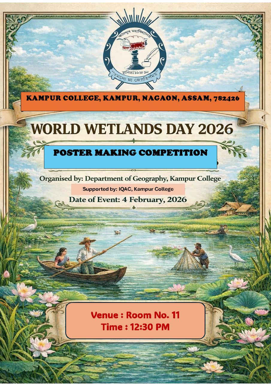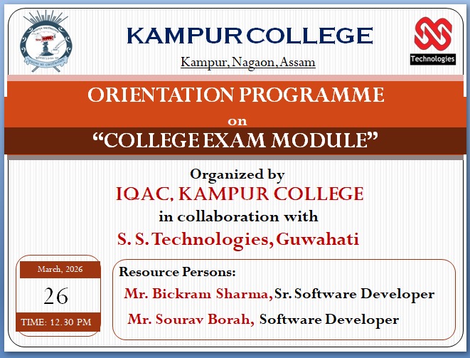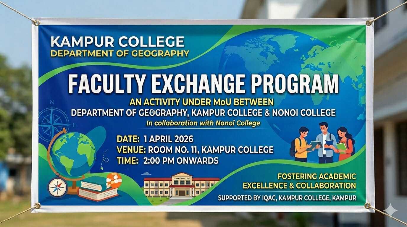 In 1967 a group of spirited and resolute young men, fresh from university first decided among themselves that they would set up a college at Kampur. These youth divulged their plan to their friends, teachers (residing in the hostel of Kampur H.S. & M.P. School) who in turn, not only welcome their dream project but also pledged to finally stand by them. In the meantime a coaching class consisting of male teachers and female students was started from July, 1967. To the satisfaction of all concemed, the executive council of Gauhati University accorded the much needed permission to start P.U arts class from the session 1968-69.In fact with the permission obtained from the G.U. Kampur College came in to existing setting sail on its voyage in to the future.... Read More
