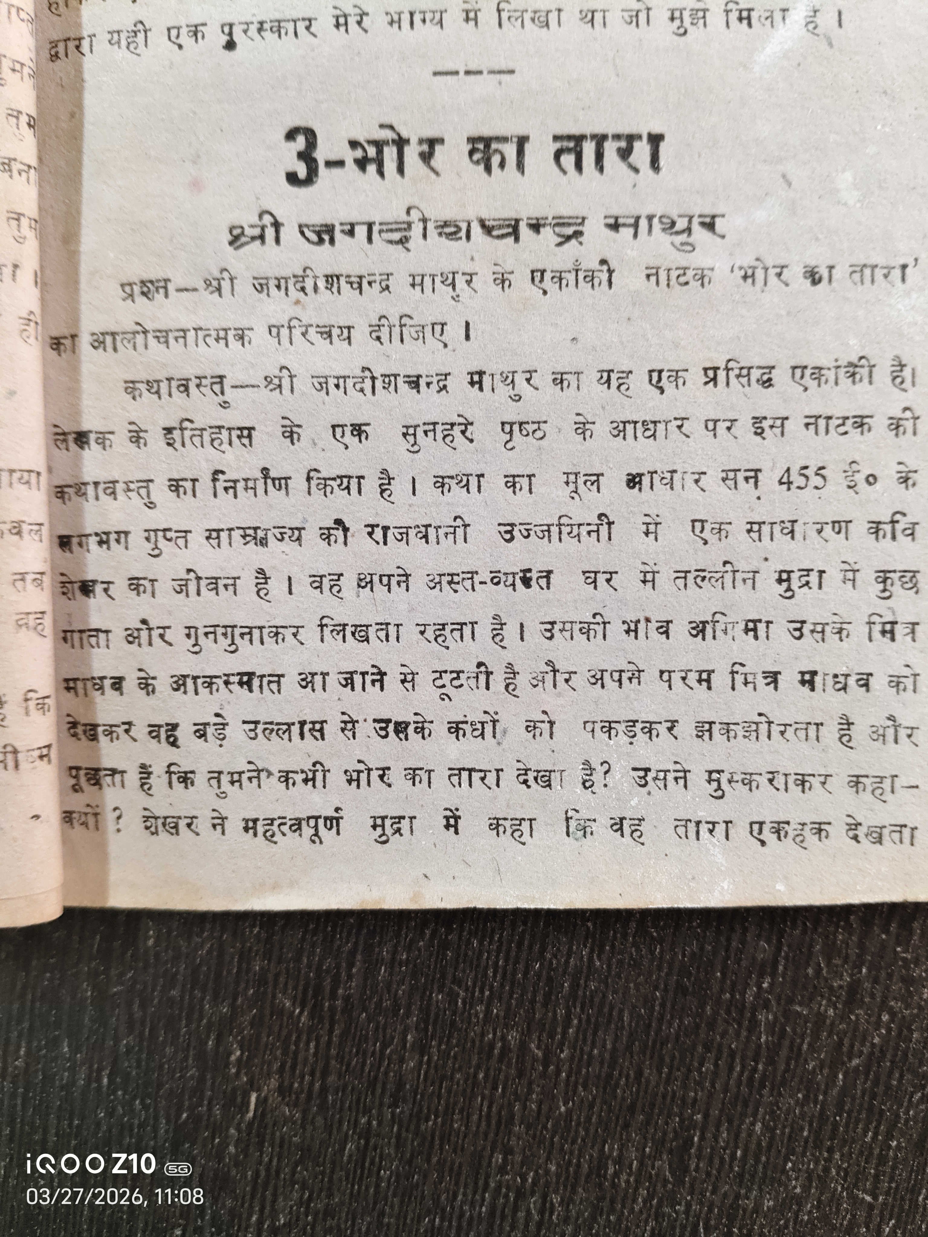 | DR.PRASANTA LASKAR | FYUGP 6TH SEM ARTS | हिन्दी एकांकी | भोर का तारा | 2025-2026 | PUBLIC | View File |