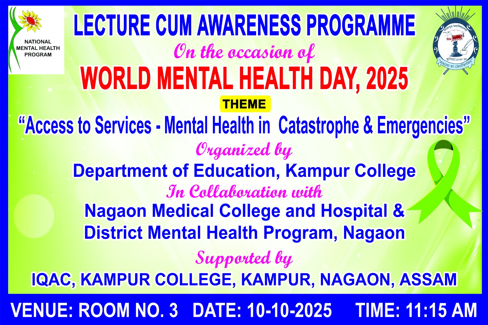 I am delighted to be a part of the 55th Annual College Week closing ceremony and glad to behold the pleasant environment of Kampur College.